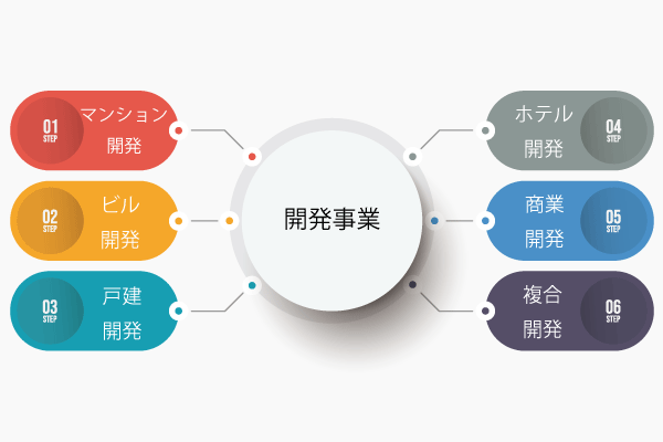 独自の膨大な情報ルートから、売り側の目的に合わせマンション・ビル・ロジスティクス・戸建開発用地等の情報から独自開発・同開発等クライアントファーストに特化した開発事業を行います。